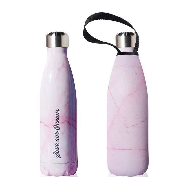 Beautiful Beaches 500ml Bottle & Cover Combo: Pink Marble with Matching Print Cover