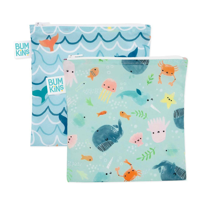 Bumkins Large Snack / Sandwich Bag 2pk – Rolling with the Waves (Sea)