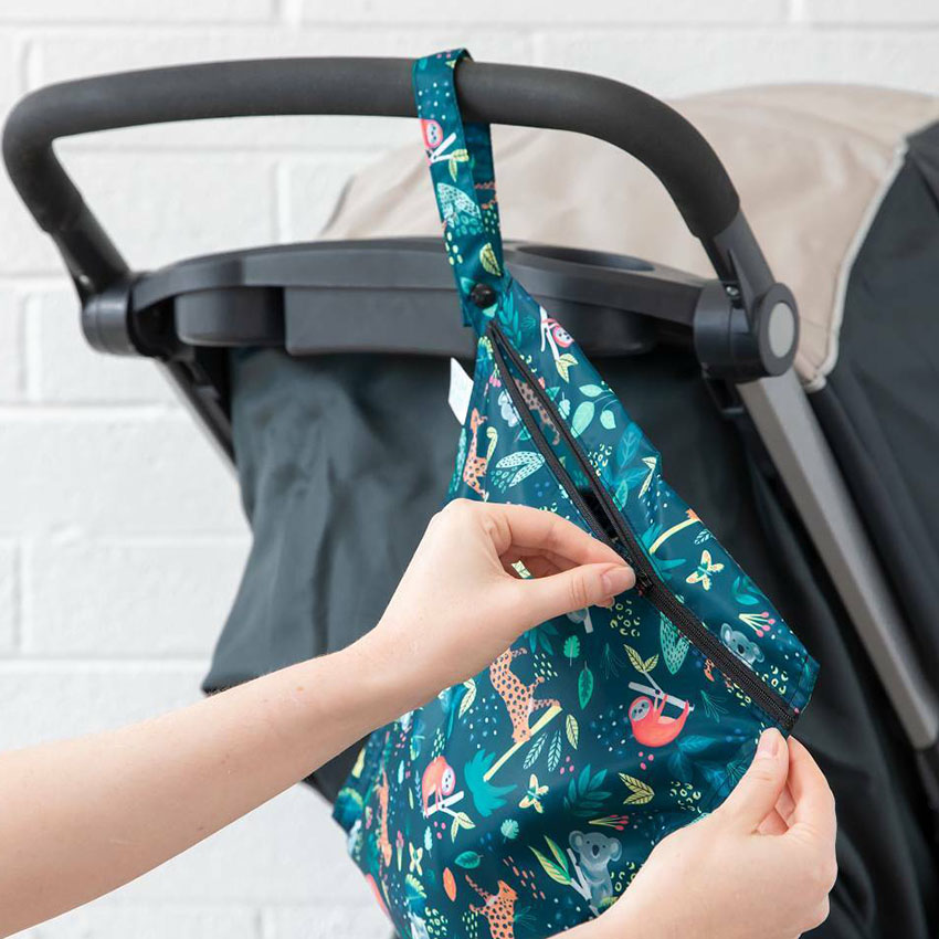 Bumkins Wet Bags offer one waterproof compartment for on-the-go storage of items like dirty clothes, messy nappies, kids wet togs or travel items. They sport a convenient snap handle for ease of hanging or carrying while their zipper closure helps keep items safely inside. Bumkin’s unique water-proof fabric keeps stains and odours out.